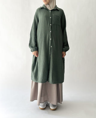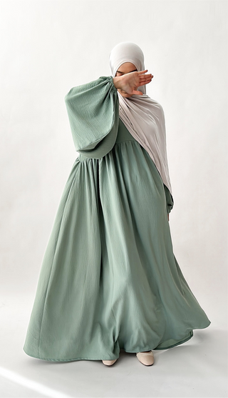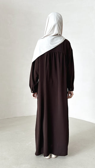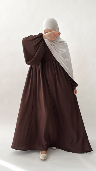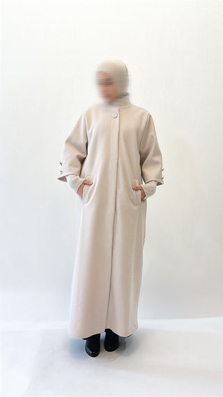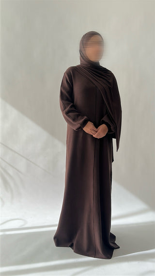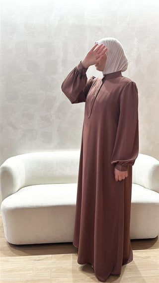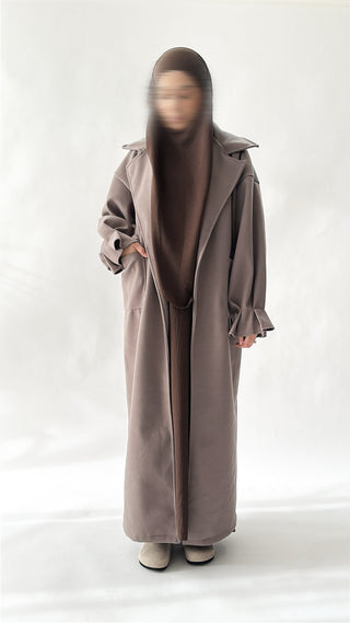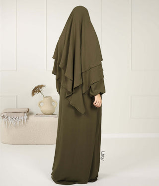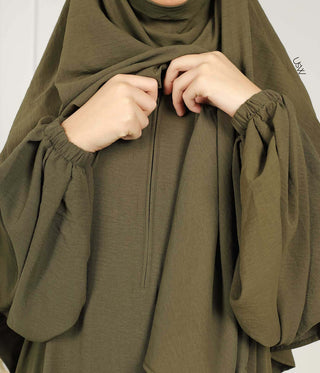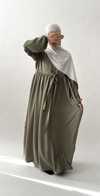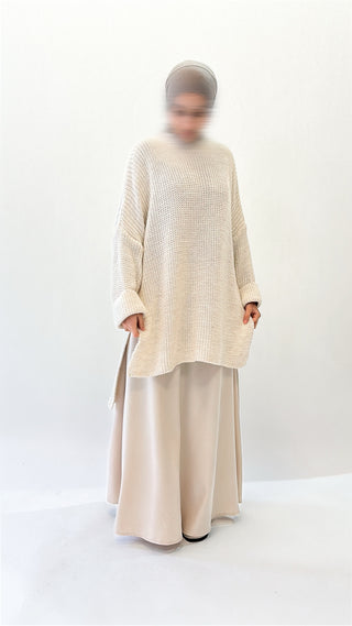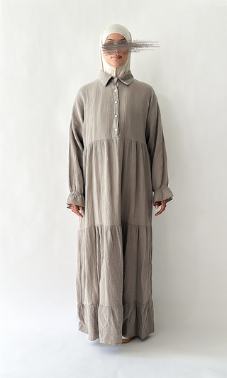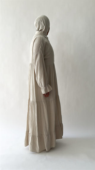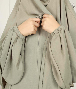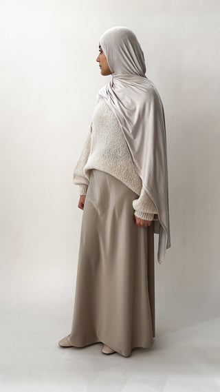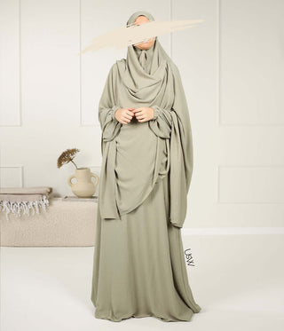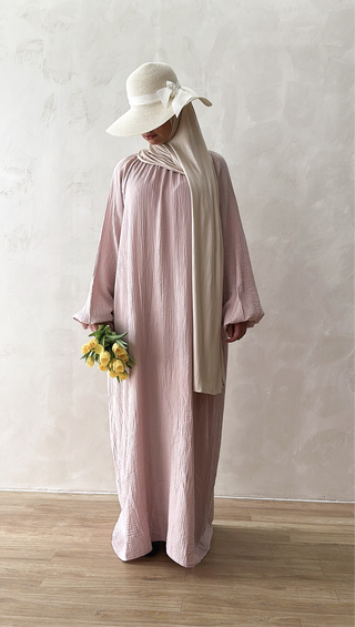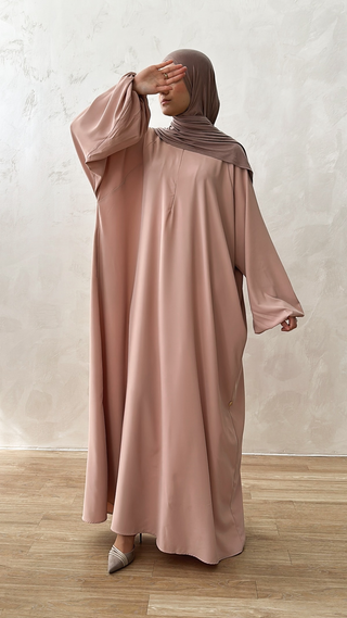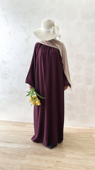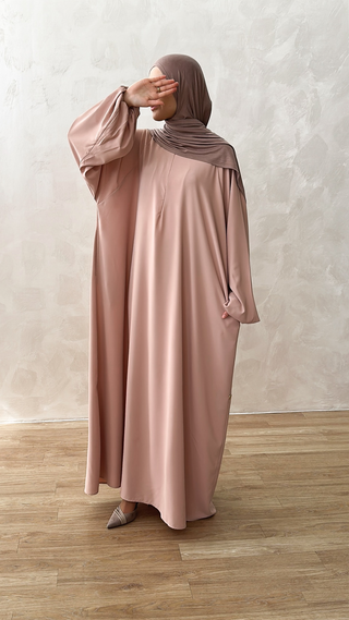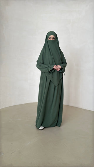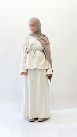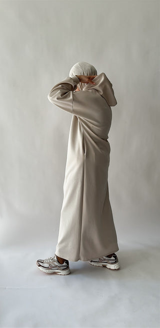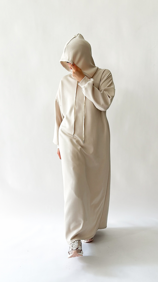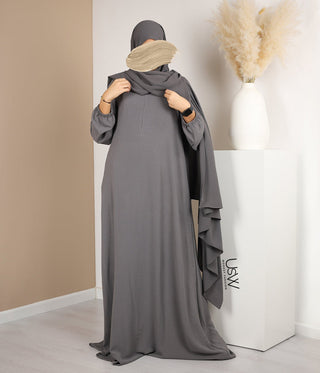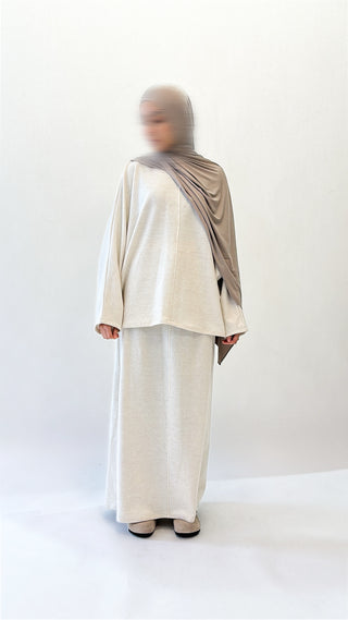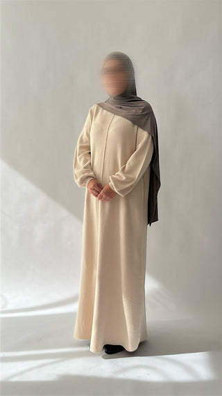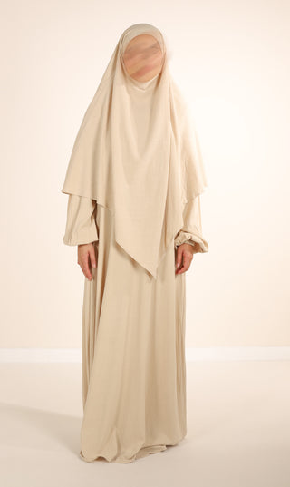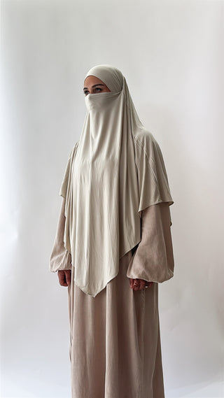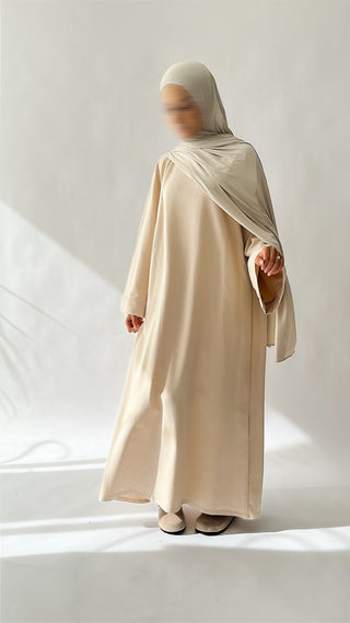 Discover the perfect blend of comfort and style with our Natural Abaya "Nila". Combine with the matching Khimar for maximum wearing comfort.