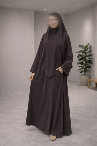 Khimarset Malak - Two-piece set of khimar and abaya with sweet, playful details. Light, covering & feminine – perfect for everyday wear. Only 39.90 € – from our low-budget category!