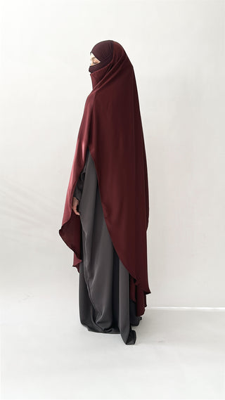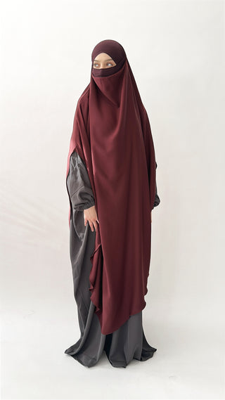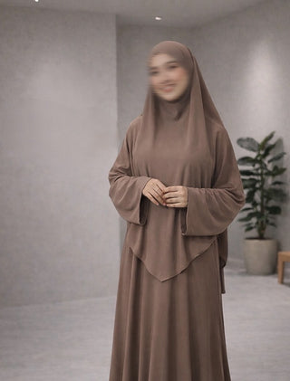 Our absolute bestseller: the Mini Khimar – available in limited quantities and selling out quickly. Made from high-quality jersey material with an integrated bonnet and chin guard, it offers a perfect fit and maximum comfort. The ideal everyday companion and THE number one short khimar.