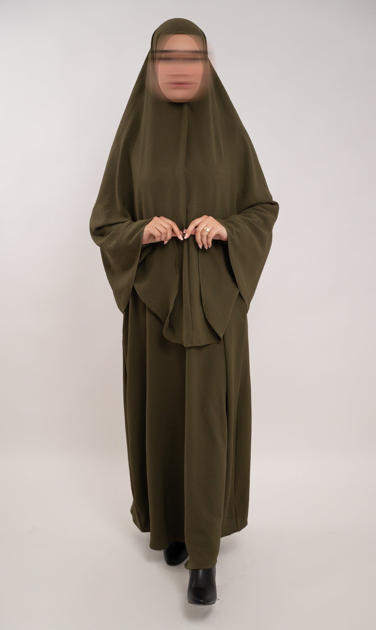 Size note: Please refer to the size chart! The model in the photo is wearing the Abaya in size Small (with high heels). She usually wears EU size 38 and is 170 cm tall.