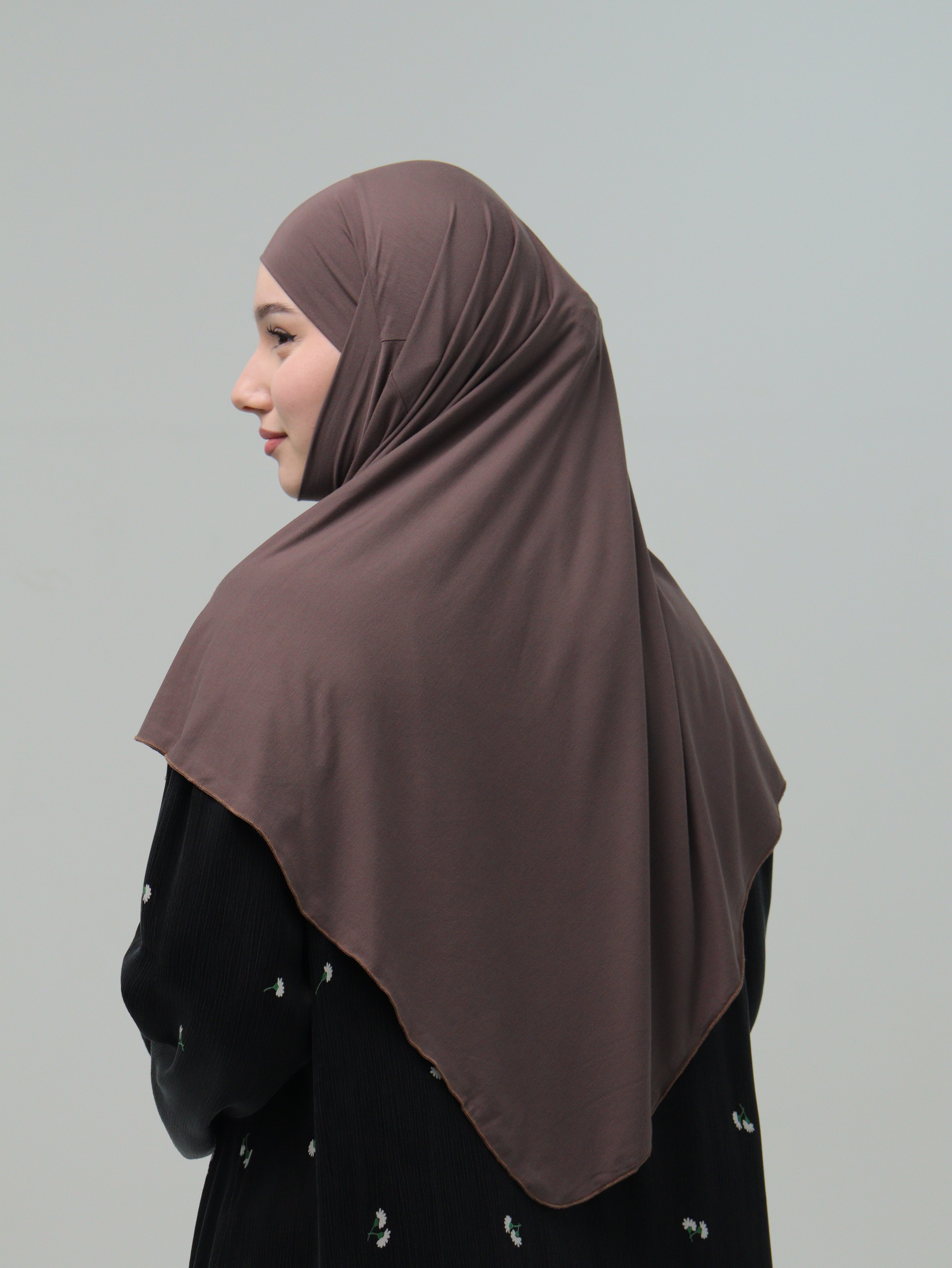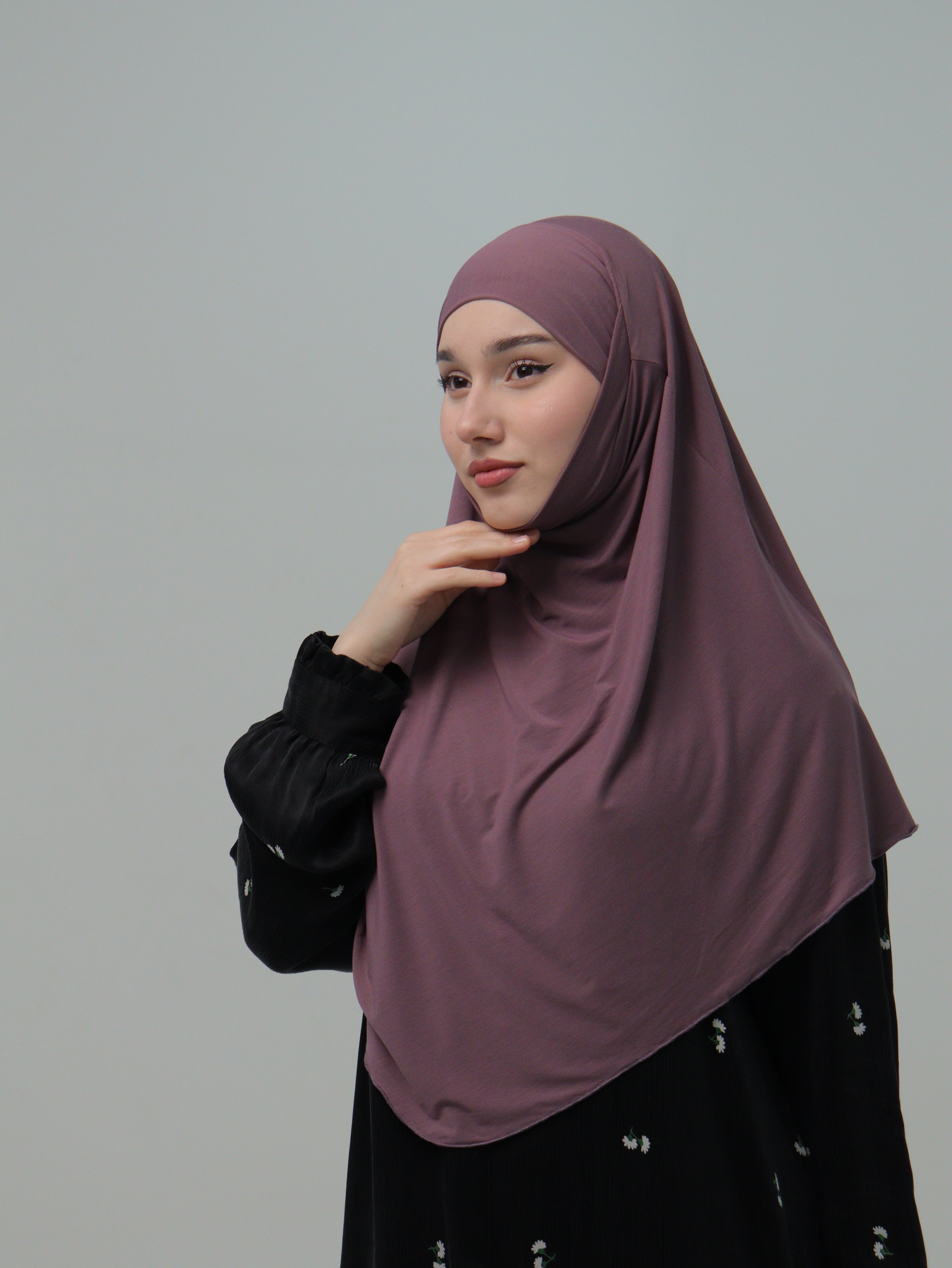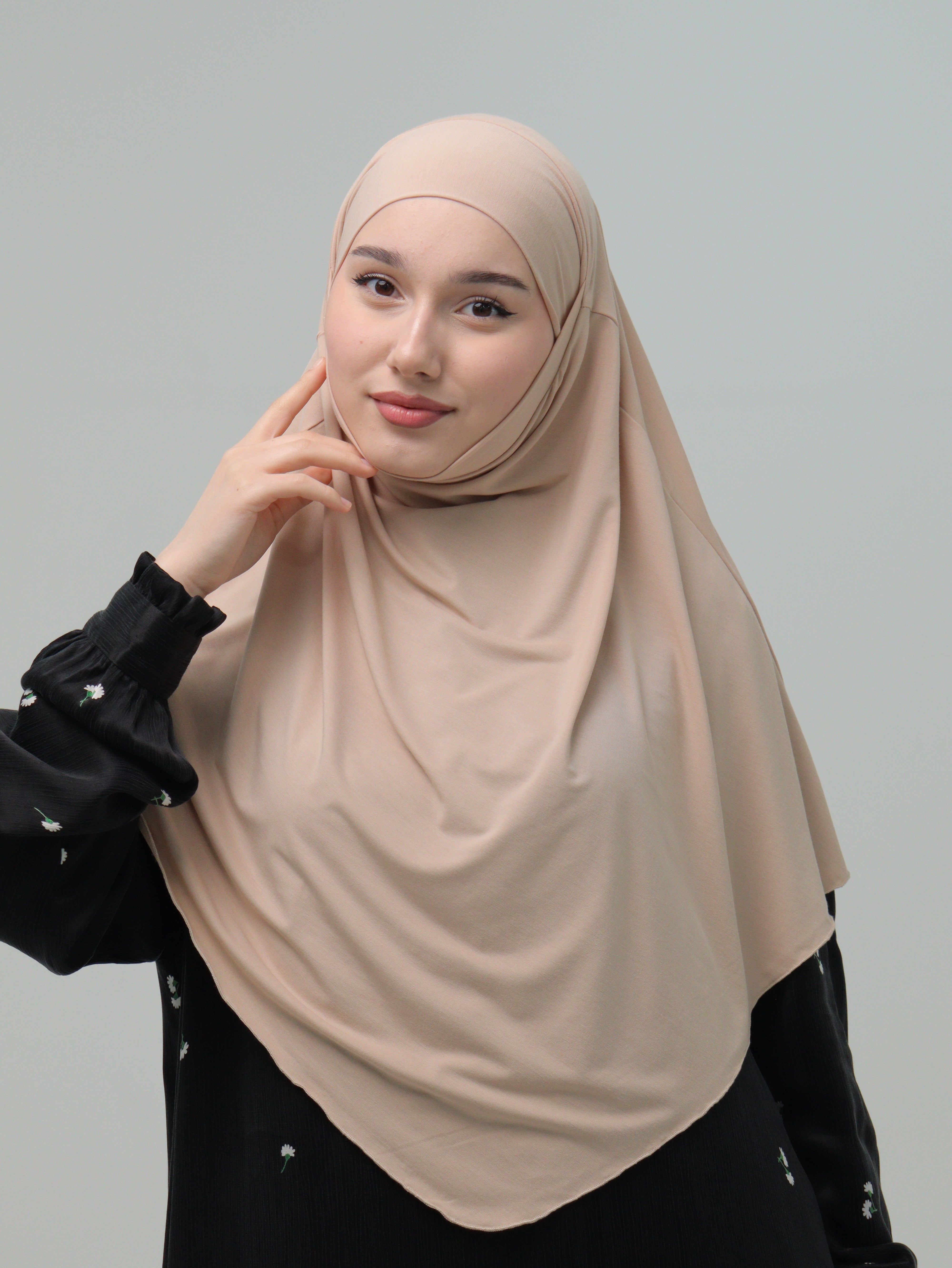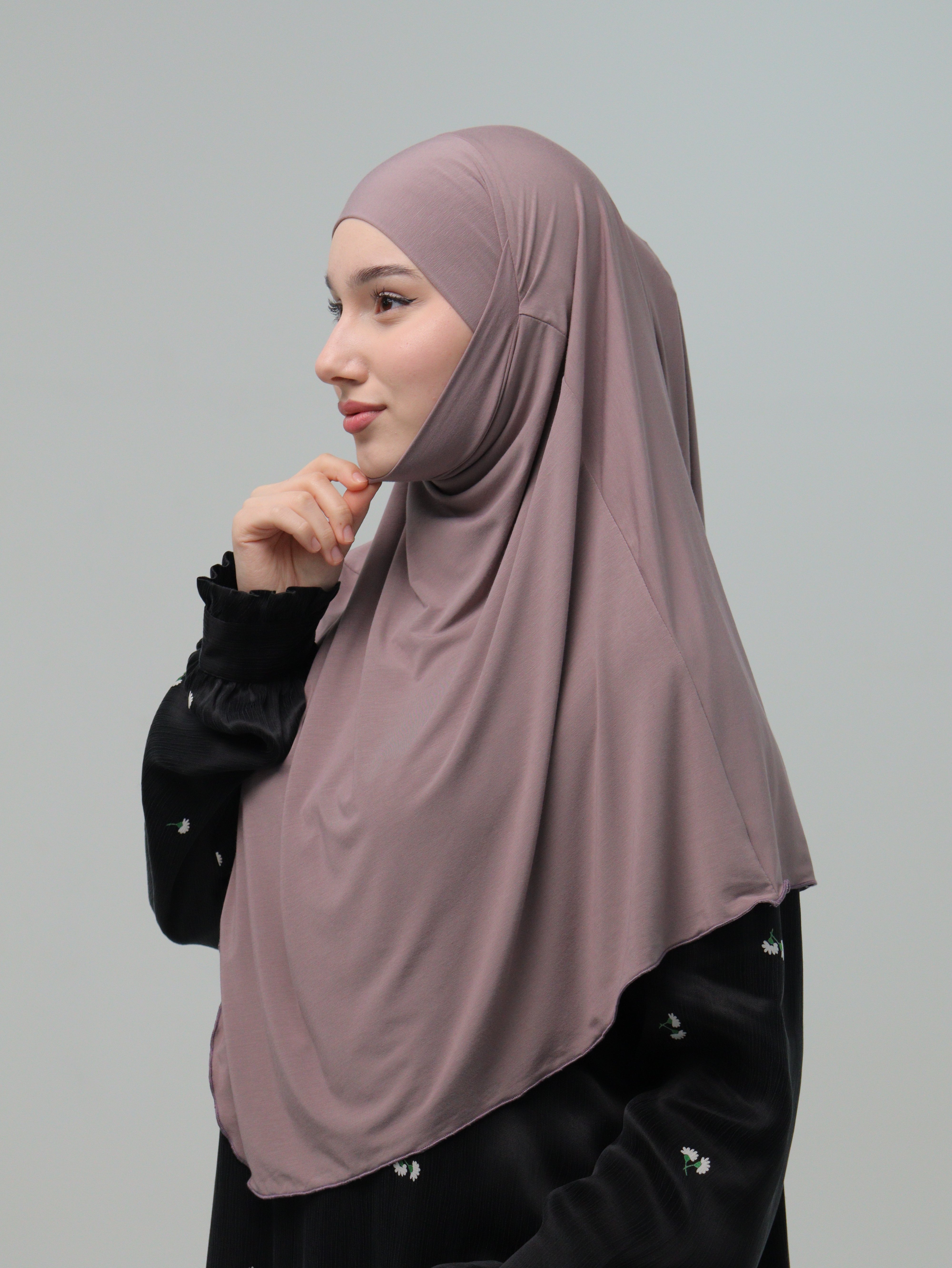 The mini khimar made of high-quality jersey material with integrated bonnet and chin coverage fits perfectly to the shape of the head and gives you an extremely comfortable wearing experience. Your perfect everyday companion and definitely the number 1 among everyday short khumur.
