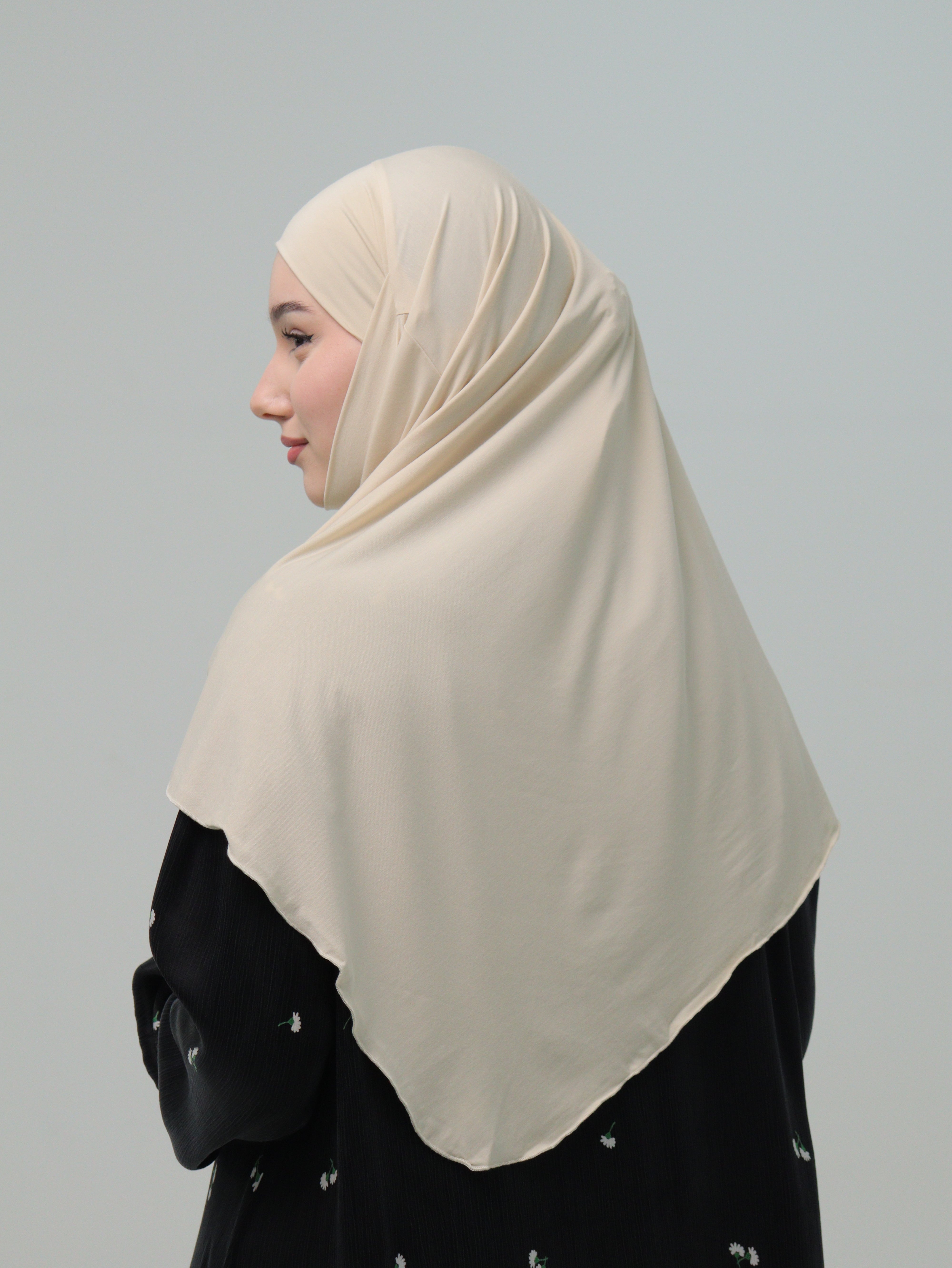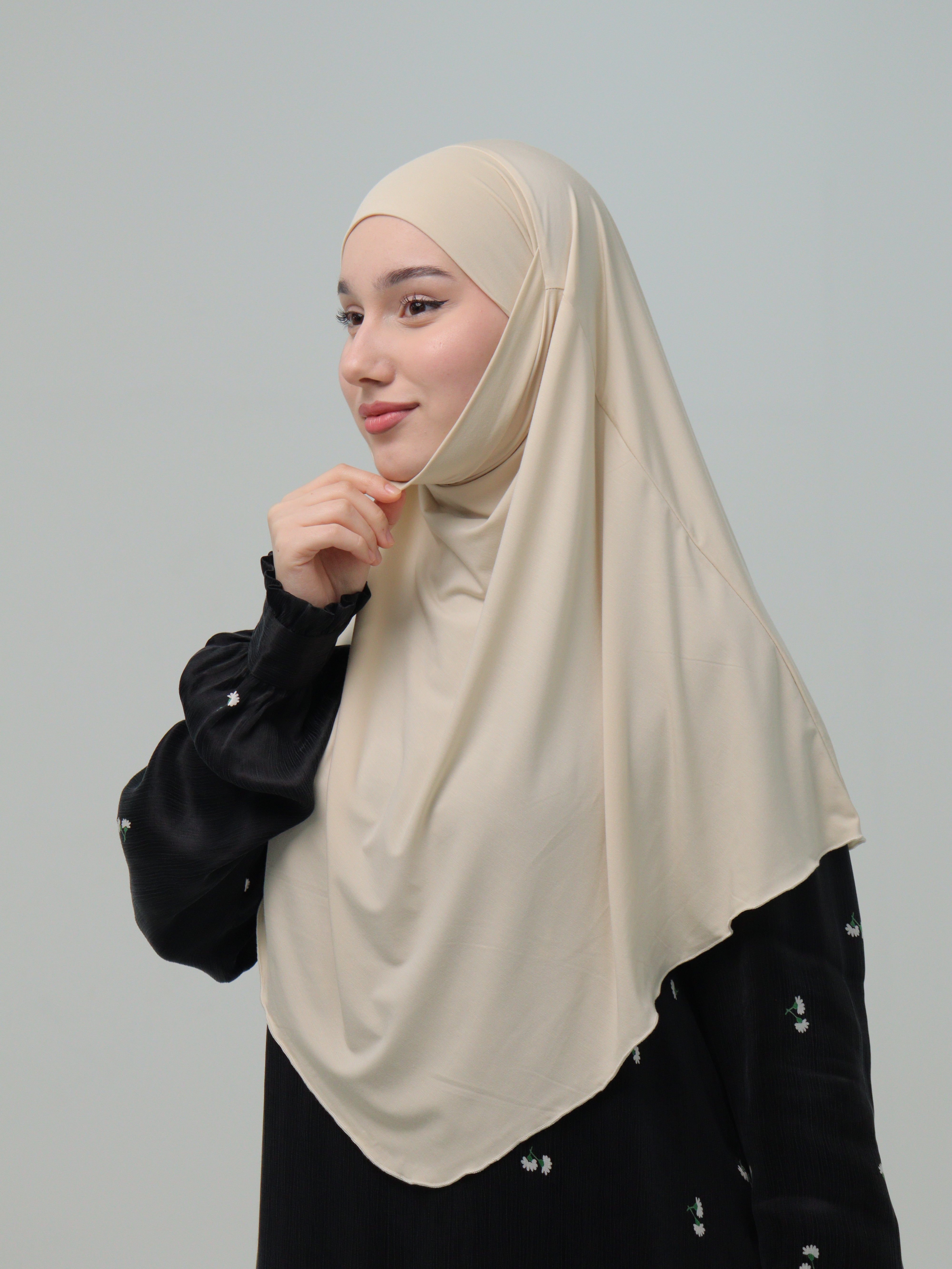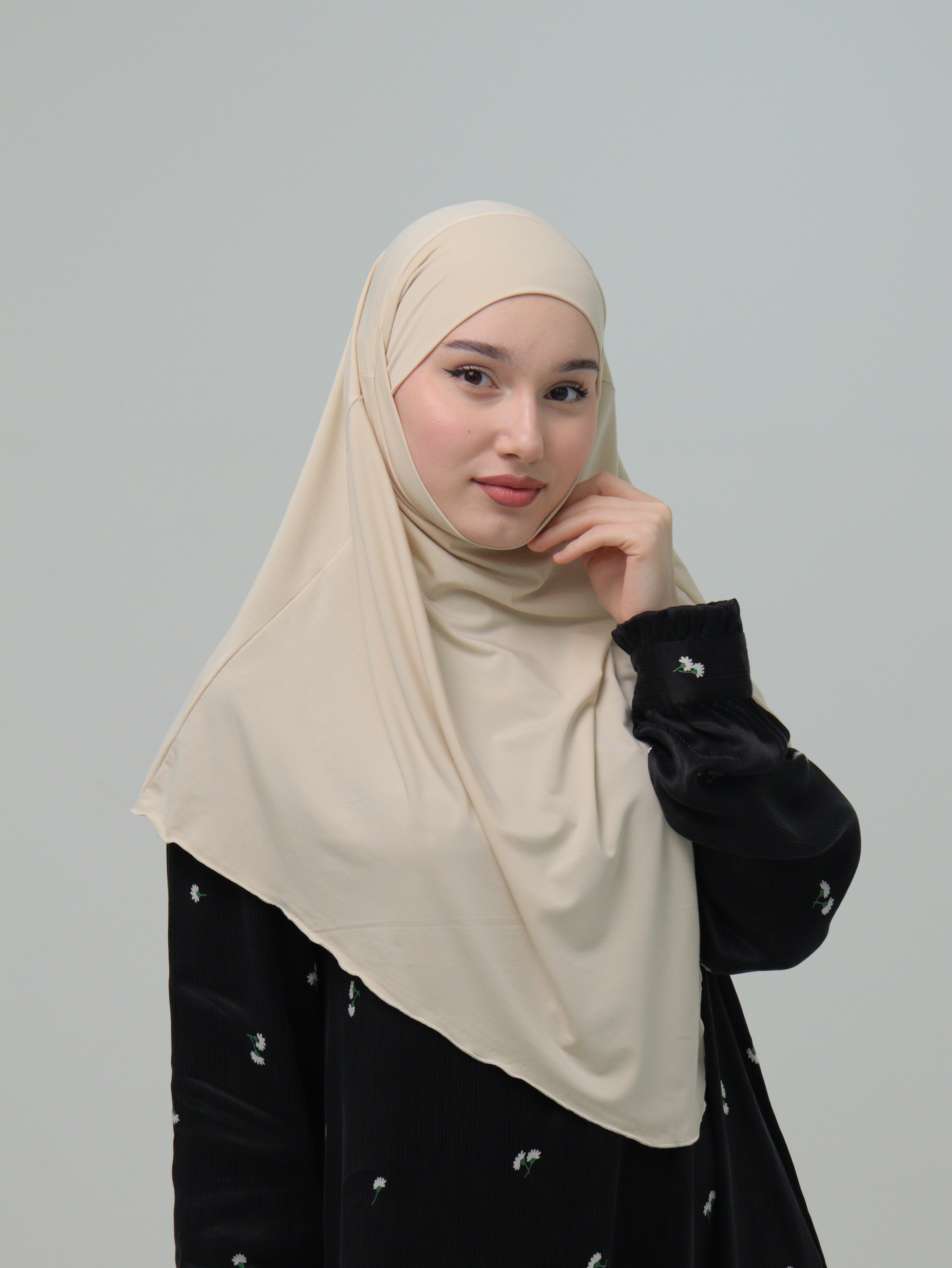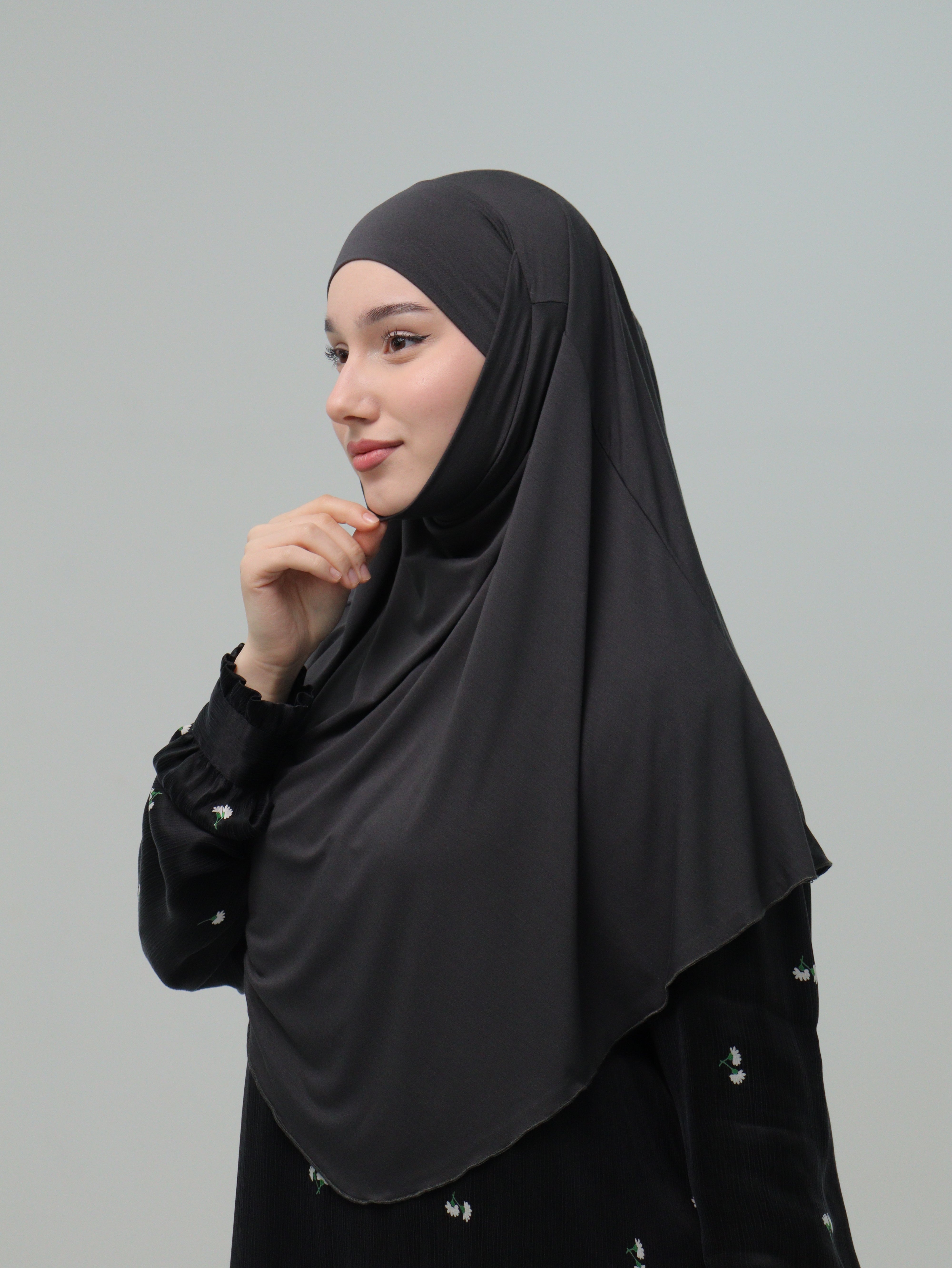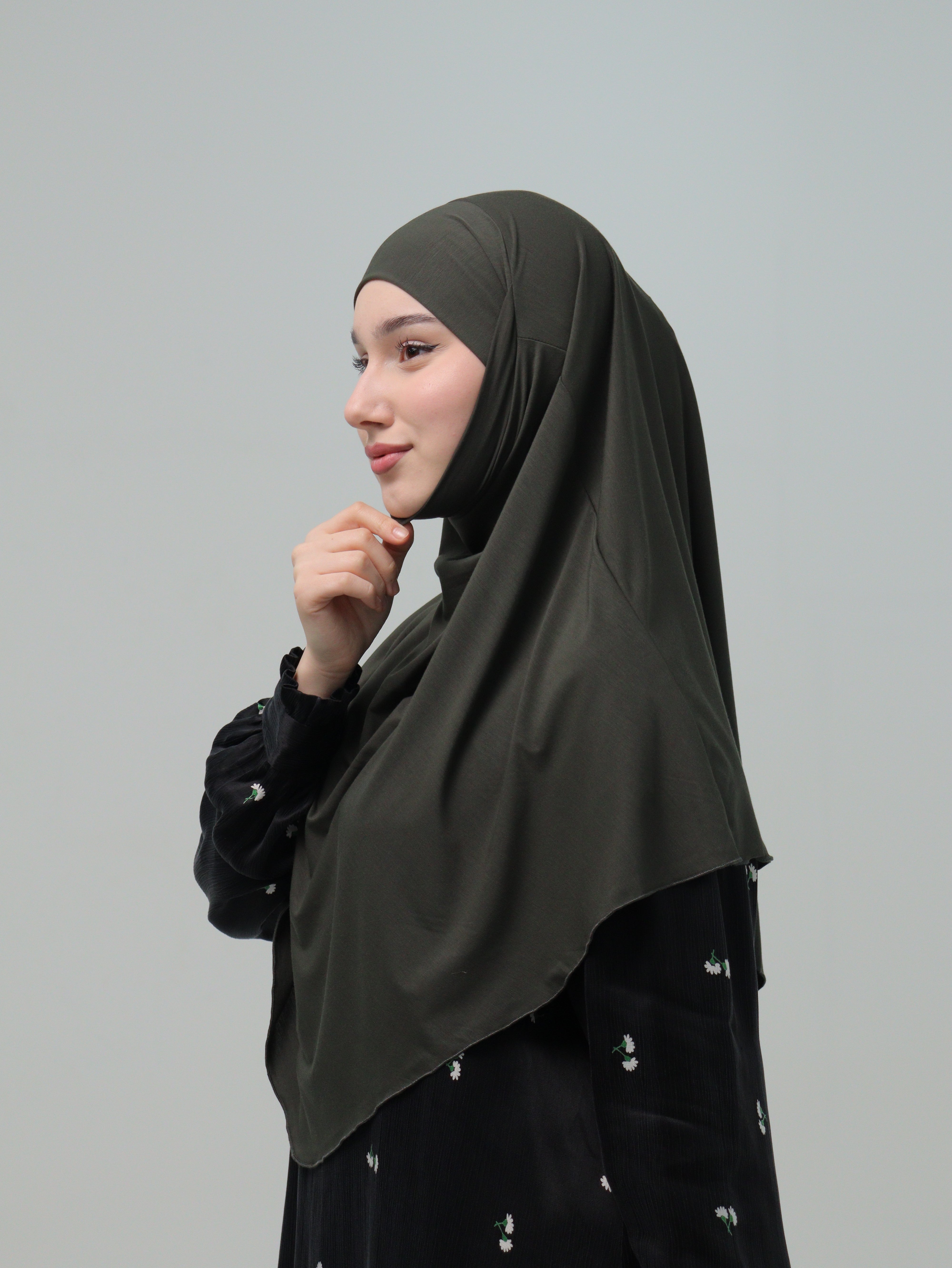 The mini khimar made of high-quality jersey material with integrated bonnet and chin coverage fits perfectly to the shape of the head and gives you an extremely comfortable wearing experience. Your perfect everyday companion and definitely the number 1 among everyday short khumur.