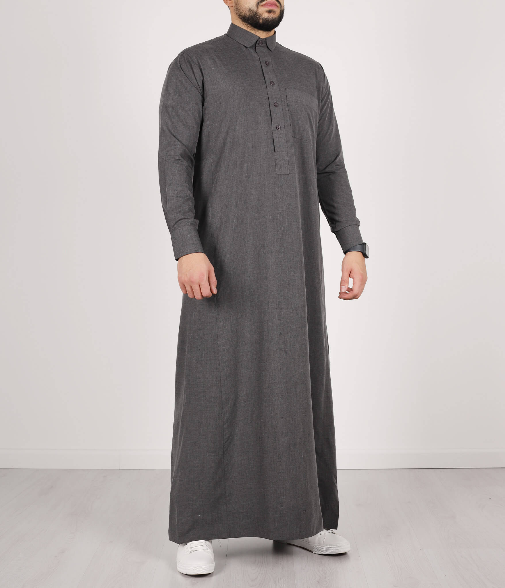 The stylish Saudi-Qamis is ideal for the mild season. The fabric is smooth and flowing, making it very comfortable to wear. But that's not all, the fit is also excellent.