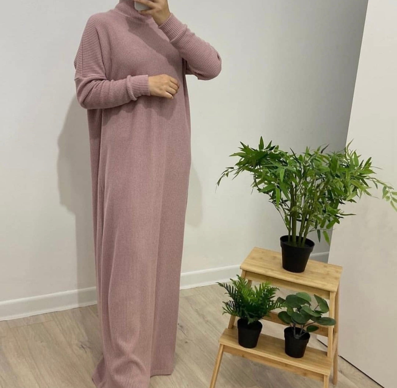With this knitted Abaya, you are well equipped for the cold winter days. The fabric is cuddly soft and fluffy cozy.