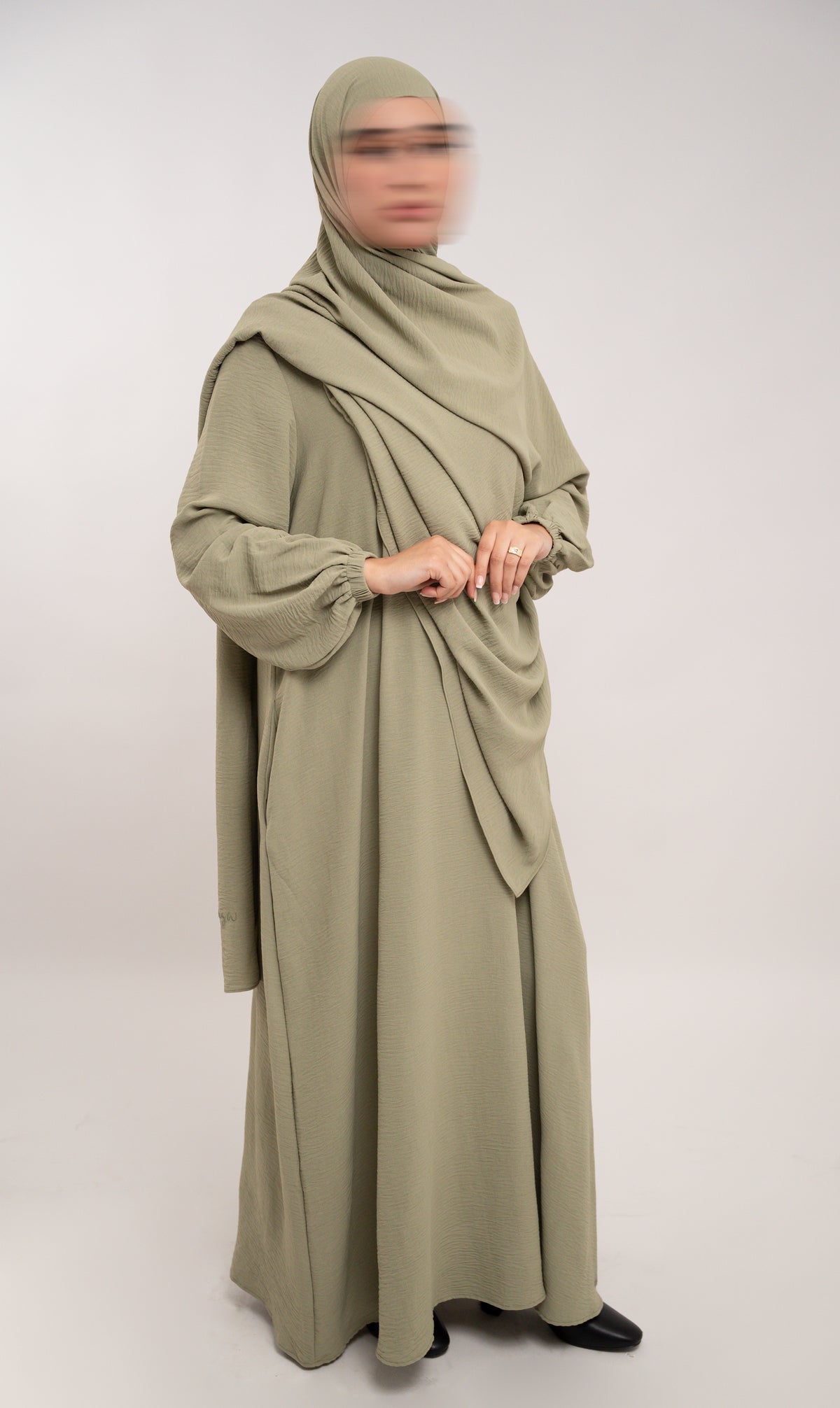 The design features a zipper at the chest, making it suitable for nursing. The sleeves are puffed (balloon) and elastic has been chosen at the wrists. This design belongs to the boutique collection of the well-known brand Umm Sarah Wear - Modest Fashion (good fit and high-quality workmanship).