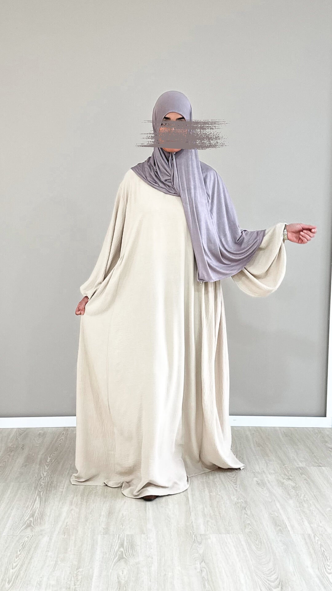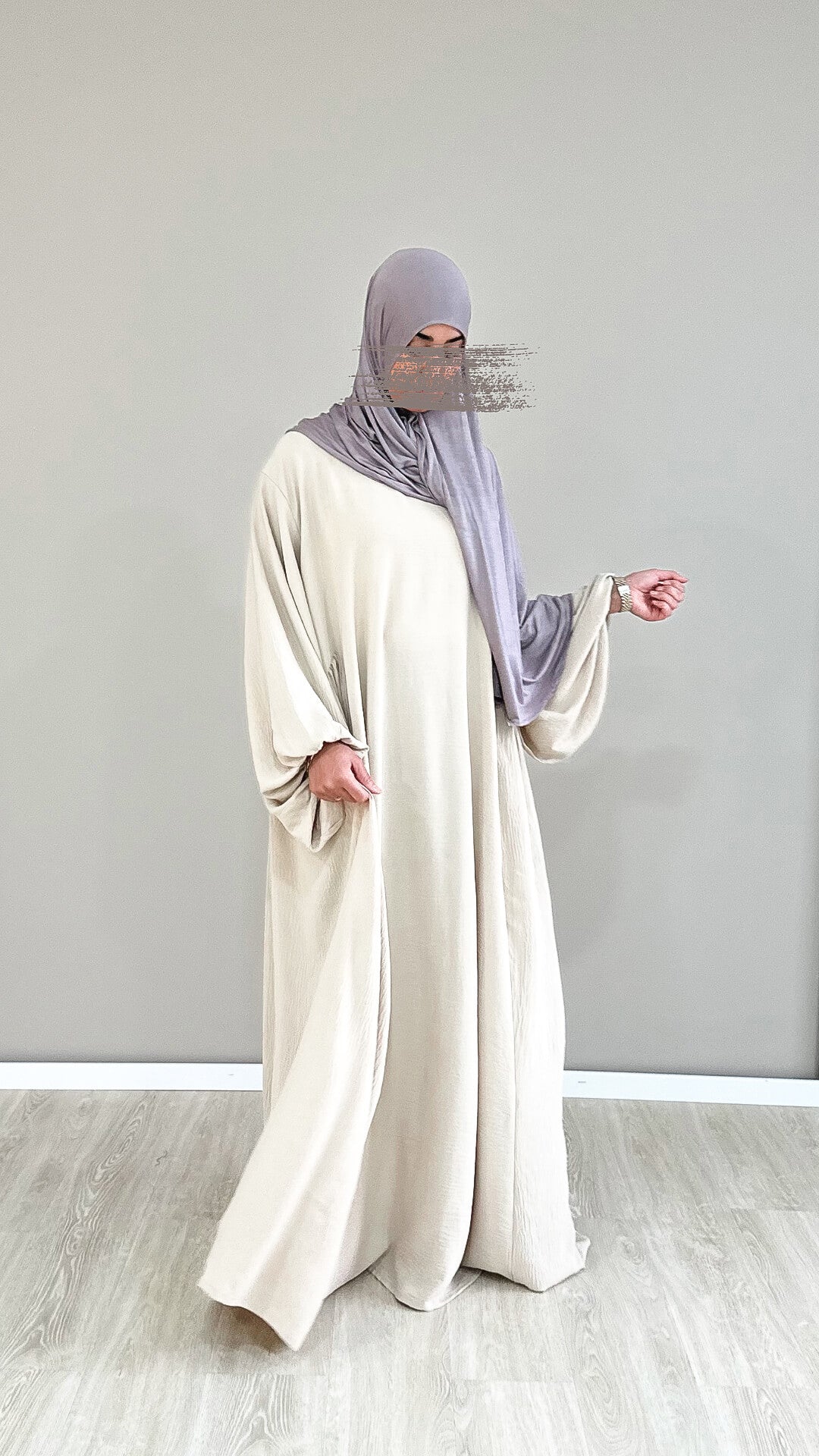 In this abaya, you will feel like a princess. The airy, lightweight, and very high-quality jazz fabric feels incredibly pleasant. A fairytale oversized cut with balloon sleeves that suits both slim and fuller-figured sisters.