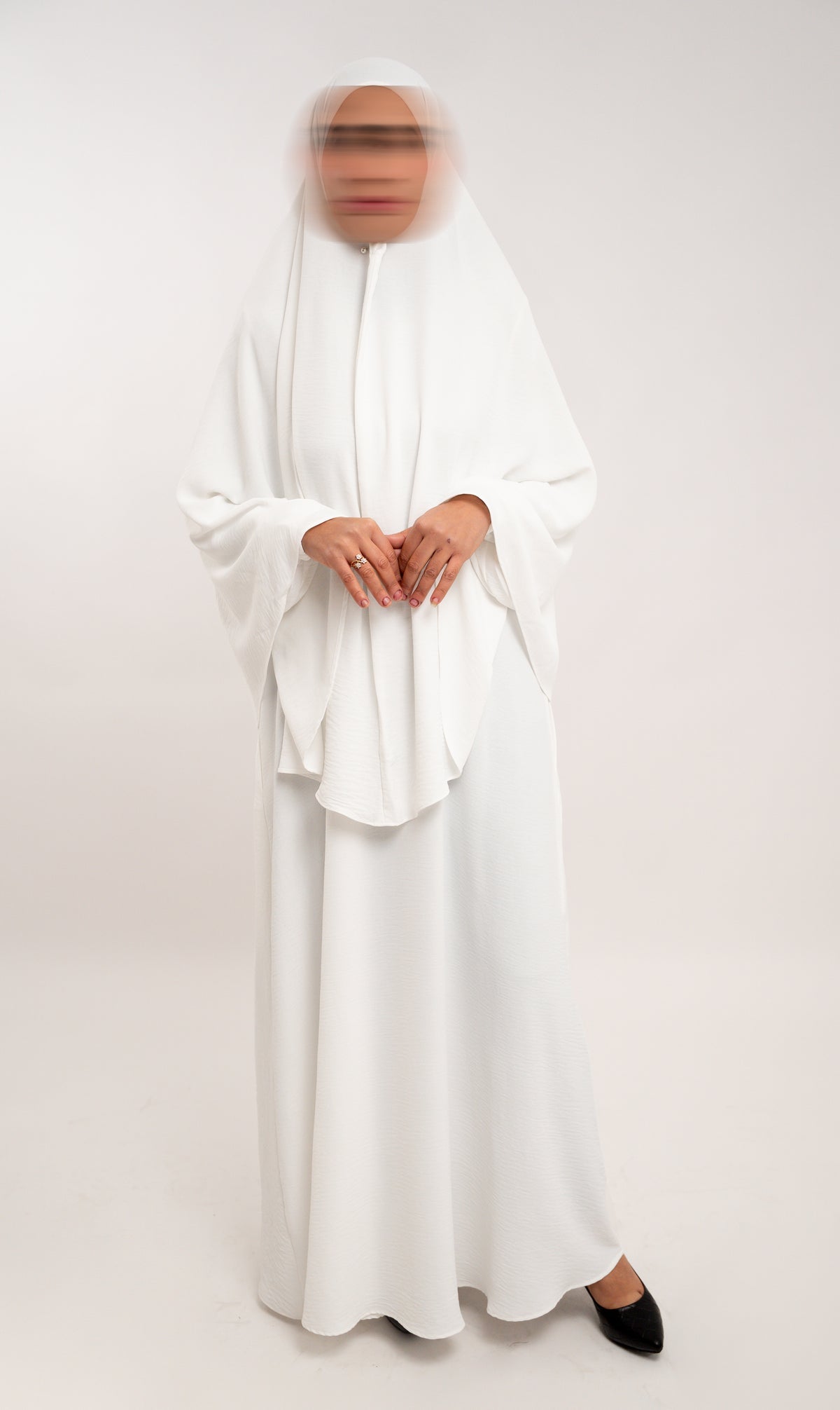 Size note: Please refer to the size chart! The model in the photo is wearing the Abaya in size Small (with high heels). She usually wears EU size 38 and is 170 cm tall.