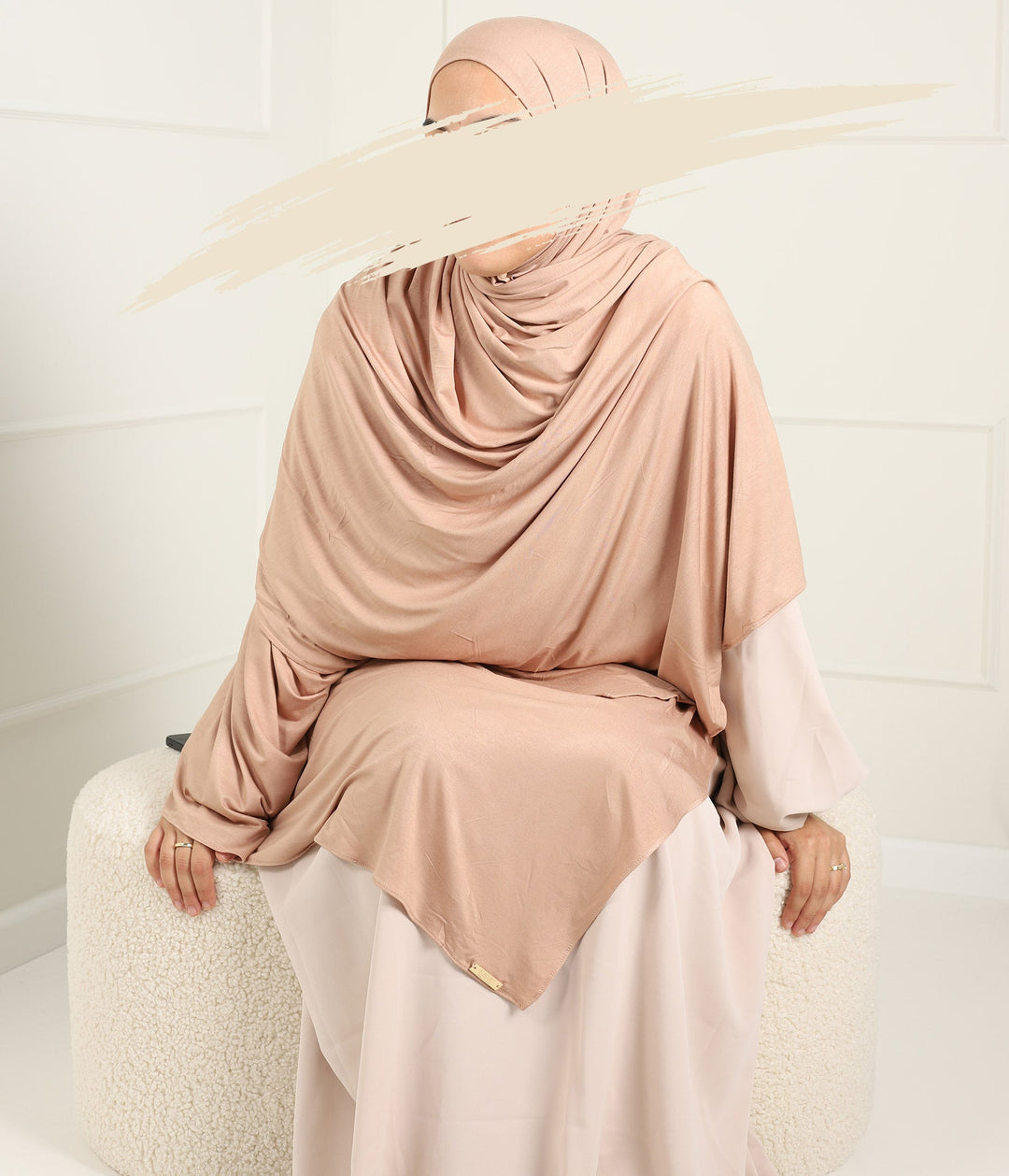 The set from the brand 'Umm Sarah Wear' consists of a maxi scarf and a comfort bonnet.