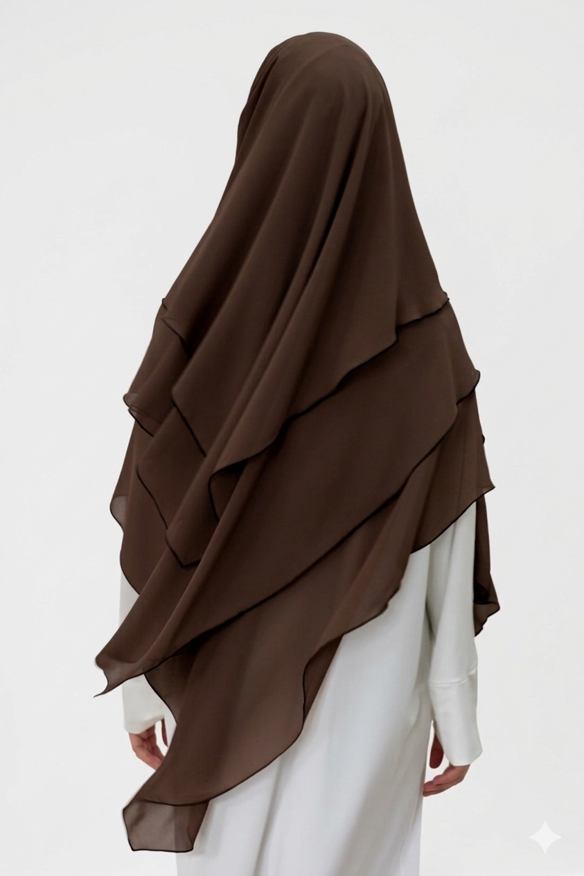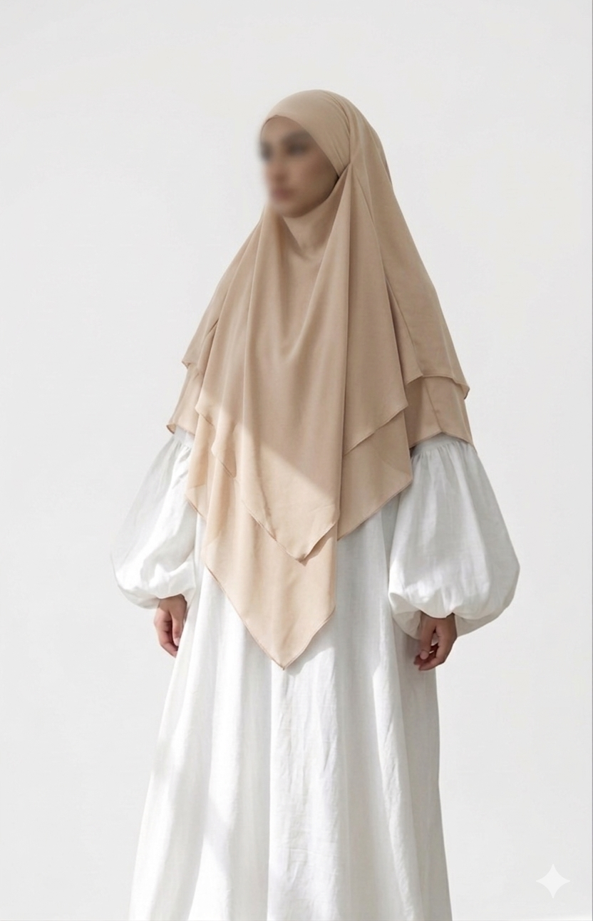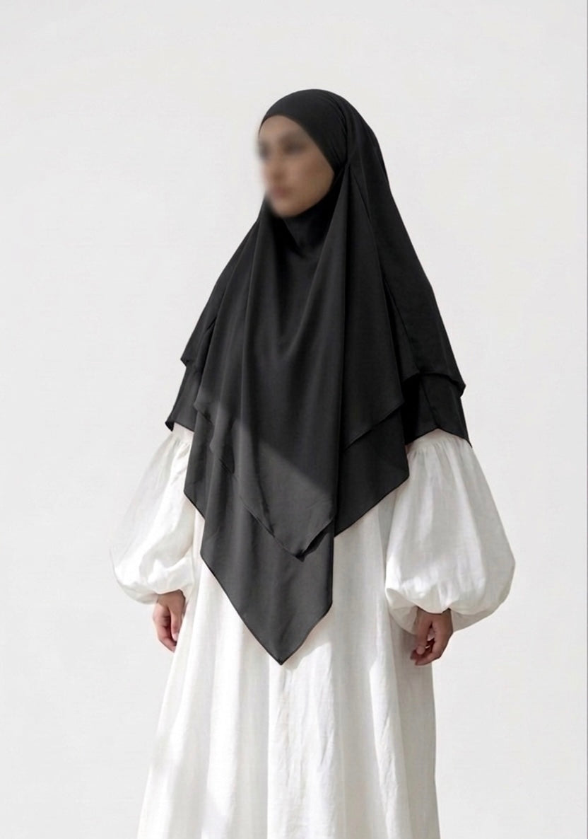 Trotz seiner Mehrlagigkeit ist der Khimar federleicht und angenehm zu tragen, selbst an wärmeren Tagen.
