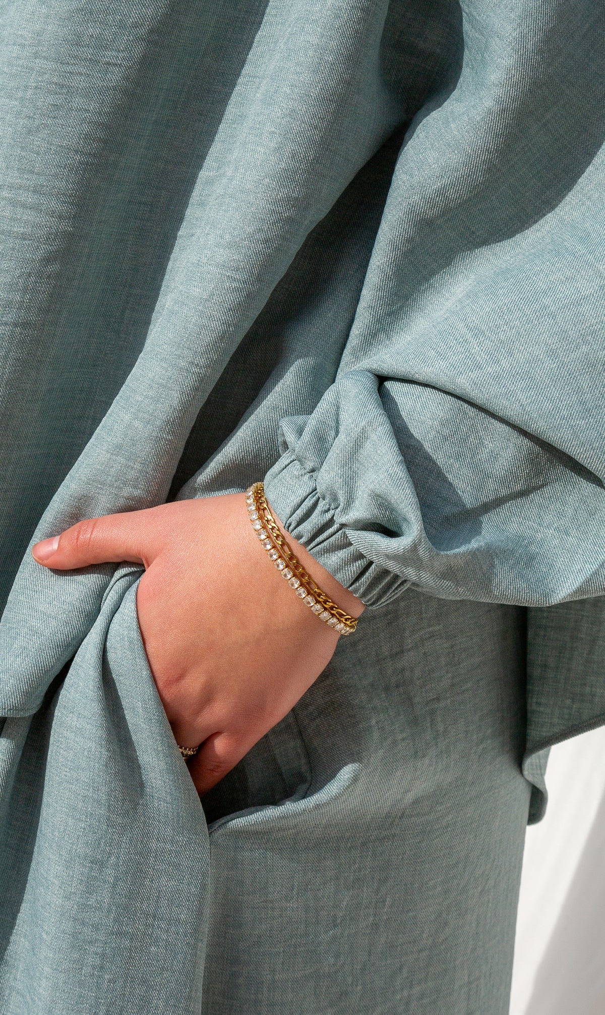 An Abaya including scarf. You can also order the Khimar for practical layering in the same color.