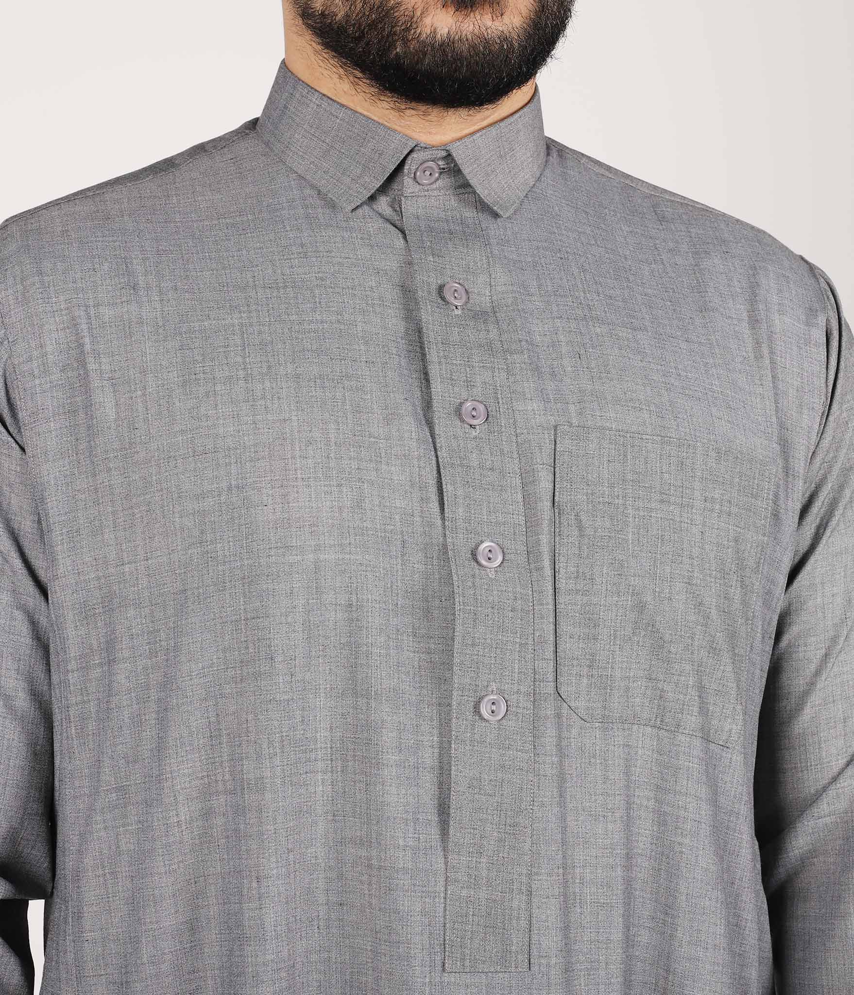 The stylish Saudi-Qamis is ideal for the mild season. The fabric is smooth and flowing, making it very comfortable to wear. But that's not all, the fit is also excellent.